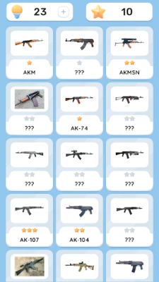 Guess different types of weapons, get stars for it and unlock new sets of weapons with them!